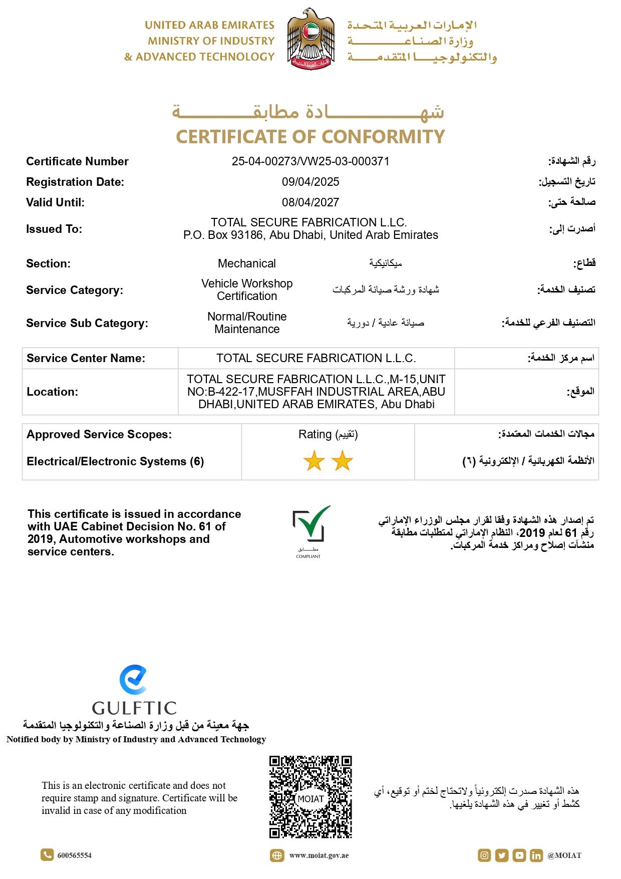 Our regulatory approvals ensure compliance with UAE safety standards and quality requirements