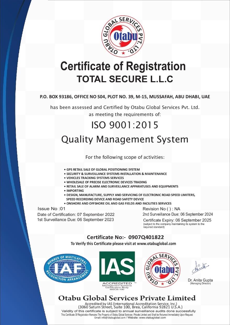 This certificate demonstrates our commitment to quality management and continuous improvement in all business processes.